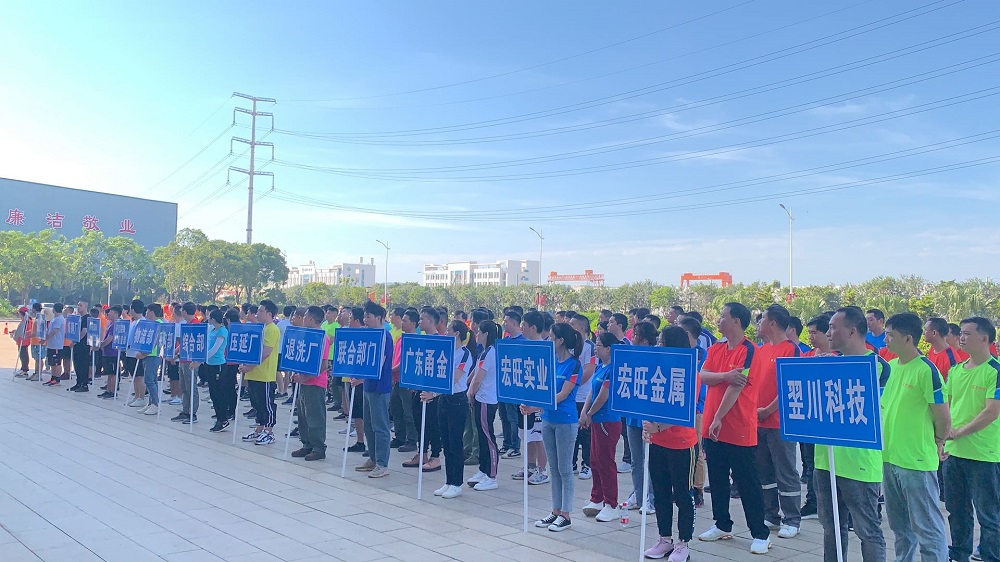 11月27日,广东广青金属科技有限公司举办了第三届职工趣味运动会,来自公司各部门(厂)以及周边合作企业组成的15支队伍参加比赛。公司党委副书记、工会主席王大庆,广东甬金总经理李飙,阳江宏旺总经理胡爱国,翌川科技党支部书记孙晓晖以及阳江高新区总工会副主席张湛等领导出席了开幕式。