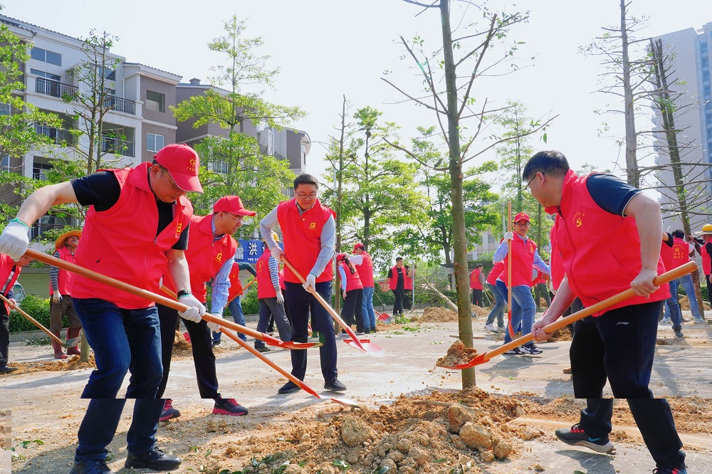 三月春光花繁茂,植树添绿正当时。3月22日,广东广青金属科技有限公司党委书记、董事长王骏带队,公司领导、各党支部书记、相关部室负责人、党员及团员代表约40人到公司结对帮扶镇——阳春市马水镇开展“春植绿美广场 共建美丽阳春”植树活动,助力马水镇打造一处绿美示范点,为阳春市区域协调发展注入绿色动能。
