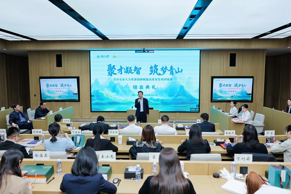 出席结业典礼的商学院领导和学员共同观看了本期培训班的结业视频。6位学员代表在结业式上分享了学习感悟。项青青说,在学习中深刻体会到跨集团公司经验内部共享的价值,与教授和同学的思维碰撞有助于明晰当前业务的机遇与挑战;梁芳表示学员要把个人梦想和企业愿景相结合,做到学以致用、知行合一,让所学知识真正转化为推动企业发展的实际行动;杨再发谈到,将近一年的深度学习,帮助他以“空杯心态”突破传统思维局限,未来将在岗位业务上持续深耕、精益求精。管巧婷用“坚持创新思维”“坚持价值创造”“坚持共享共赢”三个关键词倡议学员以所学赋能人力资源岗位实践;吴盈进着重提到多元化师资和多模块课程对拓展宏观战略视野的助益,表示今后要努力将学到的知识转化为团队战斗力的提升;钱泽文将培训学习形象地比喻为“思想闪电战”,认为商学院组织的多样化研讨活动对拓展工作思路是强有力的加持。学员代表的发言充满真情实感,大家表示,在商学院这样的的平台上,既收获了知识,也收获了同学友情,对于今后加强工作联系与协作大有裨益。