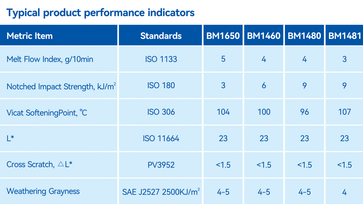 Leveraging Wanhua Chemical's comprehensive industry chain advantages in PMMA and strong R&D capabilities, the company has developed a series of paint-free PMMA/ASA alloy products. These products boast excellent weather resistance, impact resistance, and chemical corrosion resistance. They also feature vibrant colors and high glossiness, meeting the dual demands for aesthetics and performance in automotive exterior components. This innovation injects new energy into the automotive industry.